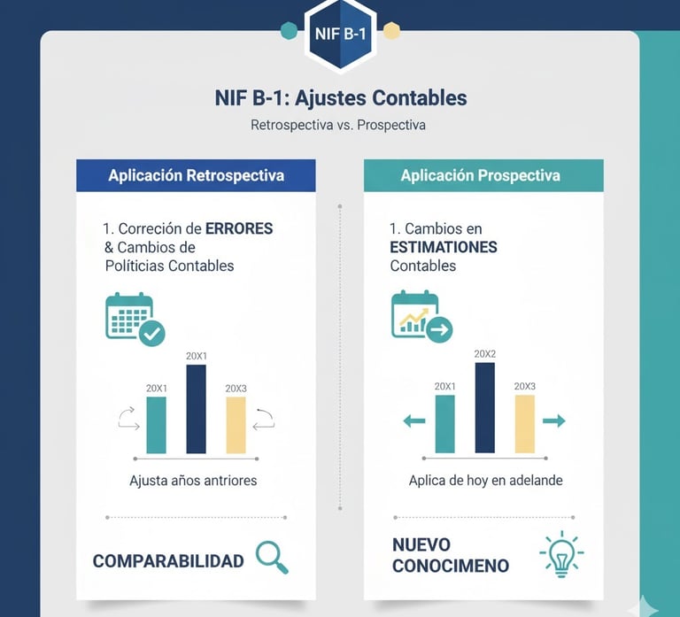 Cuando la NIF B-1 nos obliga a modificar la información, el "cómo" lo hacemos es la parte más importante. La norma establece dos grandes métodos para aplicar los cambios: